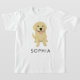 Ce joli T-shirt pour enfants présente une belle illustration de chiot de récupérateur d'or, avec un endroit où vous pouvez ajouter un nom dans une police moderne et minimaliste. Un cadeau fantastique pour n'importe quel chien ou amoureux des chiens, parfait pour célébrer l'arrivée d'un nouvel animal de compagnie!