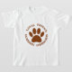 Un empreinte de patte de chien avec un effet de détresse. Texte et dessin en marron. Un design pour les gens qui aiment les chiens.