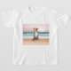 T-shirt Chien Pitbull mignon assis sur la plage avec couch