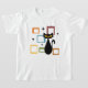 Illustration colorée de style abstrait du milieu du siècle avec chat noir, étoiles noires et cubes colorés décoration sur arrière - plan blanc. Vous pouvez ajouter votre nom/monogramme pour personnaliser l'article.