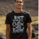Illustration numérique représentant l'expression Just Chillin You Know rendue en lettres bleues glacées. Les lettres ont un aspect gelé avec des icules qui les pendent.