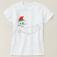 Un chat de Noël qui est un chat blanc portant un chapeau de Père Noël. Ce design semble vraiment efficace sur ce T-shirt féminin