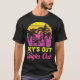 Un design cool rétro au coucher du soleil aux couleurs néons, avec des palmiers sur la plage, qui dit : Ciel dehors, cuisses dehors.