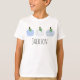 Un adorable trio de citrouilles bleu clair et blanc avec des motifs à points, à rayures et à plaids. Personnalisez avec le nom de votre enfant.