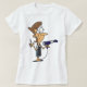 Un coiffeur avec ciseaux et sèche-cheveux. Ce design semble vraiment efficace sur ce T-shirt féminin