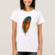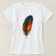 Une plume détaillée avec des couleurs riches en dégradé du bleu à l'orange.