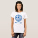 T-Shirt blanc pour femmes avec un design de détresse Hellas présentant le drapeau national de la Grèce à l'intérieur d'un cercle aztèque bleu grec. Ce T-Shirt est idéal si vous êtes Grec ou à porter pendant vos vacances en Grèce. Vous pouvez également offrir ceci en cadeau de la Grèce à quiconque aimera ce T-Shirt.
