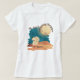 This is a Golden retriever Labrador dog design. The dog is sitting in a yoga posing and relaxing position beside the dunes and the moon. The fixed quote says "My dog is a deaming stargazer" It is possible to customize it with your dog´s name or just delete the name to have the plain T-shirt. The colors of these artwork are brown, beige, orange and dusty blue colors.