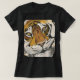 Le visage d'un tigre qui semble tourner la tête pour voir qui vient. Amical, oui, confiant, oui, alerte oui. Ce visage de tigre est sûr de compléter votre garde-robe et d'apporter la confiance à votre promenade. Profitez