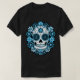 Le crâne de sucre Dia de los Muertos dans les tons colorés de bleu entouré de fleurs.