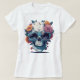 Dessin de style boho d'un crâne portant des lunettes de soleil et orné de fleurs aux couleurs pastel.