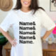 Show off your favorite people with this trendy Custom Name List T-Shirt! Designed with a clean, modern layout featuring names separated by ampersands (“&”), this shirt is fully customizable - just enter your own list of names and proudly wear your crew.