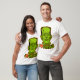 Ce T-shirt de Halloween verse par espièglerie l'hommage sur le monstre de Frankenstein avec une illustration verte et orange de la créature de film et du texte : J'aime (coeur) Frankie.