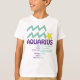 Le T-shirt personnalisé d'enfants de traits de Verseau fait un cadeau d'anniversaire parfait pour n'importe quel Verseau. Le Verseau est l'onzième signe du zodiaque et inclut toutes les personnes nées depuis le 20 janvier - 18 février. Le symbole de Verseau est le porteur de l'eau. Les traits de personnalité de Verseau sont amicaux, honnêtes, inventifs, indépendants et imprévisibles. La pierre porte-bonheur de Verseau est améthyste et la planète d'acte de Verseau est Uranus