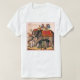 Impression vintage d'hommes faisant un acte de cirque avec un éléphant. Un homme est en train de rouler sur les défenses, un autre est allongé sous l'animal.