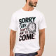 Cette conception amusante et sarcastique comprend l'expression "Désolé, je suis en retard, je ne voulais pas venir" avec une illustration de l'horloge fondue ou cassée, symbolisant la latence et la réticence. Le design mélange le bloc gras