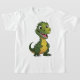 T-shirt de garçon avec un joyeux dinosaure caricaturé debout, montrant un large sourire amical avec de grands yeux qui ajoutent à son look ludique. Son corps vert et son ventre jaune contrastent doucement, tandis que de petites pointes s'alignent sur le dos.