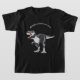 Le tee - shirt de ce garçon présente un redoutable dinosaure Rex T noir et blanc sur un arrière - plan noir.
