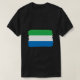 Un tricolore dynamique représentant la Sierra Leone, présente des bandes horizontales de vert, blanc et bleu pour un drapeau simple mais impactable.