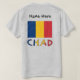 Design, sur un T-shirt pour hommes, présente le drapeau tchadien avec le mot, CHAD, ci-dessous dans le tricolore. Ci-dessus vous trouverez un endroit pour votre nom pour ajouter un look personnalisé, ou, créer un cadeau customisé. Le drapeau du Tchad est constitué de trois bandes verticales, une chacune : bleu, rouge et or. Les voyageurs et ceux d'ascendance tchadienne l'adoreront.