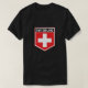 Le drapeau national de la Suisse est infusé dans une forme de bouclier qui a également le nom du pays placé au-dessus du drapeau.