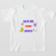 Ce T-shirt présente un design audacieux et coloré avec l'expression ‘DONNE-MOI UN PEU D'ESPACE’. La conception comprend des images liées à l'espace telles que des fusées, des planètes, un casque astronaute et des étoiles. Le thème du design est ludique et se concentre sur l'exploration spatiale et l'astronomie.