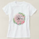 Fleur rose aquarelle moderne élégant T-shirt cadeau personnalisé design. Fait partie d'une collection moderne simple et chic. Conception de chemise Mme personnalisée avec écriture moderne stylée et couronne de fleurs rose peut être personnalisée avec 'mariés'. Fait un excellent cadeau de mariage pour la lune de miel !