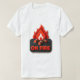 Un petit feu de camp dans un style artisanal dans des couleurs rouge et orange vif avec le texte sur le feu en lettres rouge vif sur un rectangle noir en dessous.