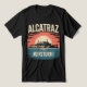 Affiche de style rétro représentant la célèbre île de la prison d'Alcatraz au coucher du soleil. Un graphisme parfait pour les amateurs d'histoire, de criminalité et d'atmosphère d'antan.