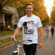 Halloween Funny Ghost Cyclopath Tri-Blend Shirt présente le texte "Cyclopath" dans la typographie de script moderne avec un fantôme à vélo pendant que les chauves-souris volent dans l'arrière - plan. Parfait pour les cyclistes pour les fêtes et célébrations d'Halloween. Créé par Evco Studio www.zazzle.com/store/evcostudio