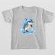Un t-shirt pour enfants est montré avec un joli imprimé graphique dauphin. Couleur gris cendre Customisez cet article ou achetez tel quel.