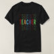Cette conception comporte un t-shirt noir avec le mot "ENSEIGNANT" répété trois fois dans une pile verticale. Chaque "ENSEIGNANT" est écrit dans une couleur et un contour différents.