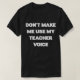 Ce drôle de t-shirt dit : Ne me faites pas utiliser ma voix d'enseignant. Un grand cadeau pour n'importe quel enseignant. Une façon ludique et humoristique pour quelqu'un, souvent un enseignant ou quelqu'un en position d'autorité, d'affirmer en plaisantant son autorité ou de commander l'attention.
