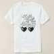 Un joli t-shirt pour la mariée avec "Femme du Parti" dans un grand script rétro style années 70 et des lunettes de soleil en forme de coeur. Les t-shirts "Vie du Parti" sont disponibles pour le groupe de bachelorettes.