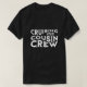 T-Shirt d'ÉQUIPAGE COUSIN moderne, avec un texte ondulé blanc gras qui lit CROISIR AVEC MON ÉQUIPAGE COUSIN. Pourquoi ne pas en acheter un pour chacun de vos cousins qui célèbrent la Journée nationale des cousins ? Les cousins peuvent vraiment être nos amis à vie, et porter ce T-shirt Cousin Crew va les aider à leur montrer combien vous appréciez votre lien spécial avec eux.