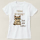 Ce tee-shirt est composé d'un chaton grincheux qui s'accroche à une tasse de café, associé à la phrase anodine : "Feline Grumpy ? Ajoutez Juste Du Café !"