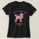 Le joli Pink Poodle, drapé de rose, est le design présenté sur le tee - shirt de cette femme, disponible en plusieurs couleurs et styles.