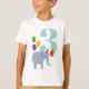 Un éléphant heureux est prêt à faire la fête avec des ballons colorés et un casquette de fête faisant de cette chemise un choix adorable pour célébrer l'enfant d'anniversaire avec leur âge dans un grand numéro d'aqua.