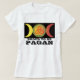 Devant : Sur un arrière - plan noir, trois phases de la lune, un ouroboros, et un triquetra, avec FIER D'ÊTRE PAGAN en dessous.