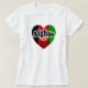 Une chemise sympa avec un coeur avec le drapeau afghan dessus. Le texte indique: Afghan girl L'arrière-plan est de couleur blanche. C'est sympa de faire un cadeau ou de vous montrer que vous êtes fière d'être afghan. Les couleurs : noir, vert, blanc et rouge.