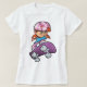 Une fille skateboarder sur son skateboard. Ce design semble vraiment efficace sur ce T-shirt féminin