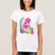 Un t-shirt avec une jolie illustration d'un flamant rose avec quelques pastèques et ananas. Couleurs rose et vert. L'été et tropical.