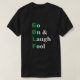 N'importe quel golfeur appréciera ce drôle de t-shirt de golf ! Le texte vert et blanc sur la chemise noire est "Allez et riez fou" avec la première lettre de chaque mot expliquant GOLF en vert.