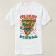 A bold and chaotic cartoon featuring a melting pizza monster with the ironic quote “Dream Big – Nightmare.” Perfect for fans of weird humor, horror-comedy art, and expressive retro illustrations. Looks amazing on shirts, stickers, posters, and accessories.
