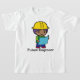 Pour l'ingénieur en formation. Garçon aux cheveux violets dans un chapeau jaune dur aux plans bleus. Avec les mots "Future Engineer".