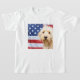 Goldendoodle s'assoit fièrement devant le drapeau américain lors du Memorial Day.