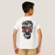 Cette chemise pour enfants d'Halloween amusante a une pierre tombale déplaisante, une chauve-souris volant contre une pleine lune rouge de sang, un crâne avec des yeux de feu, et une araignée de veuve noire poilue. RIP est gravé dans la pierre tombale. Sous la scène déplaisante, il y a un modèle pour le nom de votre enfant. Sur le dos du t-shirt, il y a un autre crâne humain horrifiant.