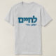 Un T-shirt avec le l'chaim hébreu de travail, y compris la traduction, "à la vie." Perfectionnez pour n'importe quel ami juif ou Non-Juif célébrant le cadeau de la vie.