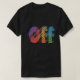 Un t-shirt avec le texte "OFF" dans une police futuriste, pixelisée, avec une palette de couleurs néon. Le design évoque un sens de la technologie et du cyberpunk, avec une ambiance ludique et énergique. OFF T-shirt design Futuriste Pixelated police Couleurs néon Cyberpunk Jouer Technologie énergétique Moderne Design graphique tendance Mode Vêtements