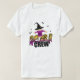 Un épouvantail à tête de paille, portant un casquette de sorcière noire est accentué par des corbeaux volants et annonce que vous faites partie de "The Scare Crew". Ce design fonctionne bien pour un costume d'Halloween pour enfants ou pour adultes. La typographie audacieuse a une palette de couleurs dorée et violette. Cherchez ID1002 pour voir d'autres produits avec cette effrayante conception Halloween.